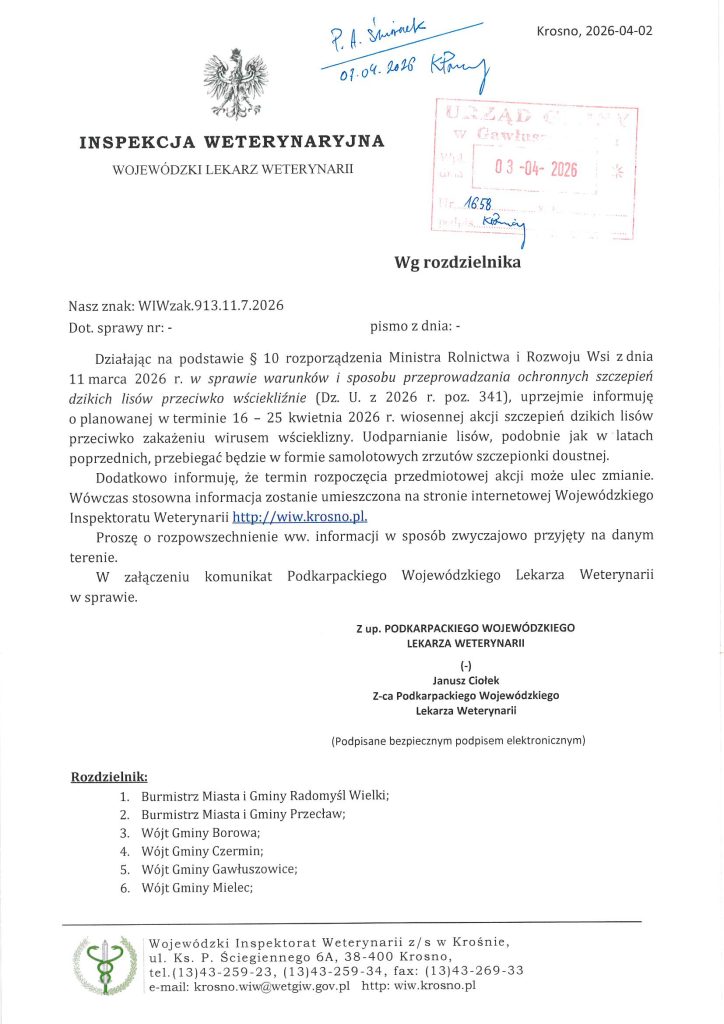 Informacja Wojewódzkiego Lekarza Weterynarii – szczepienie lisów