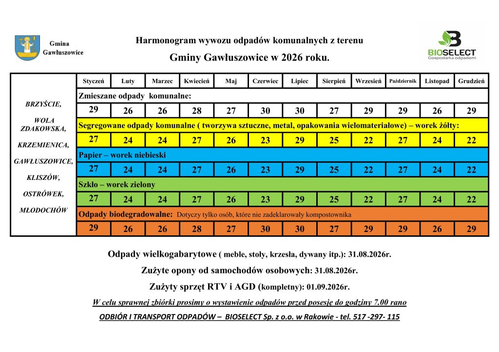 Harmonogram 2023 Gmina Gawłuszowice