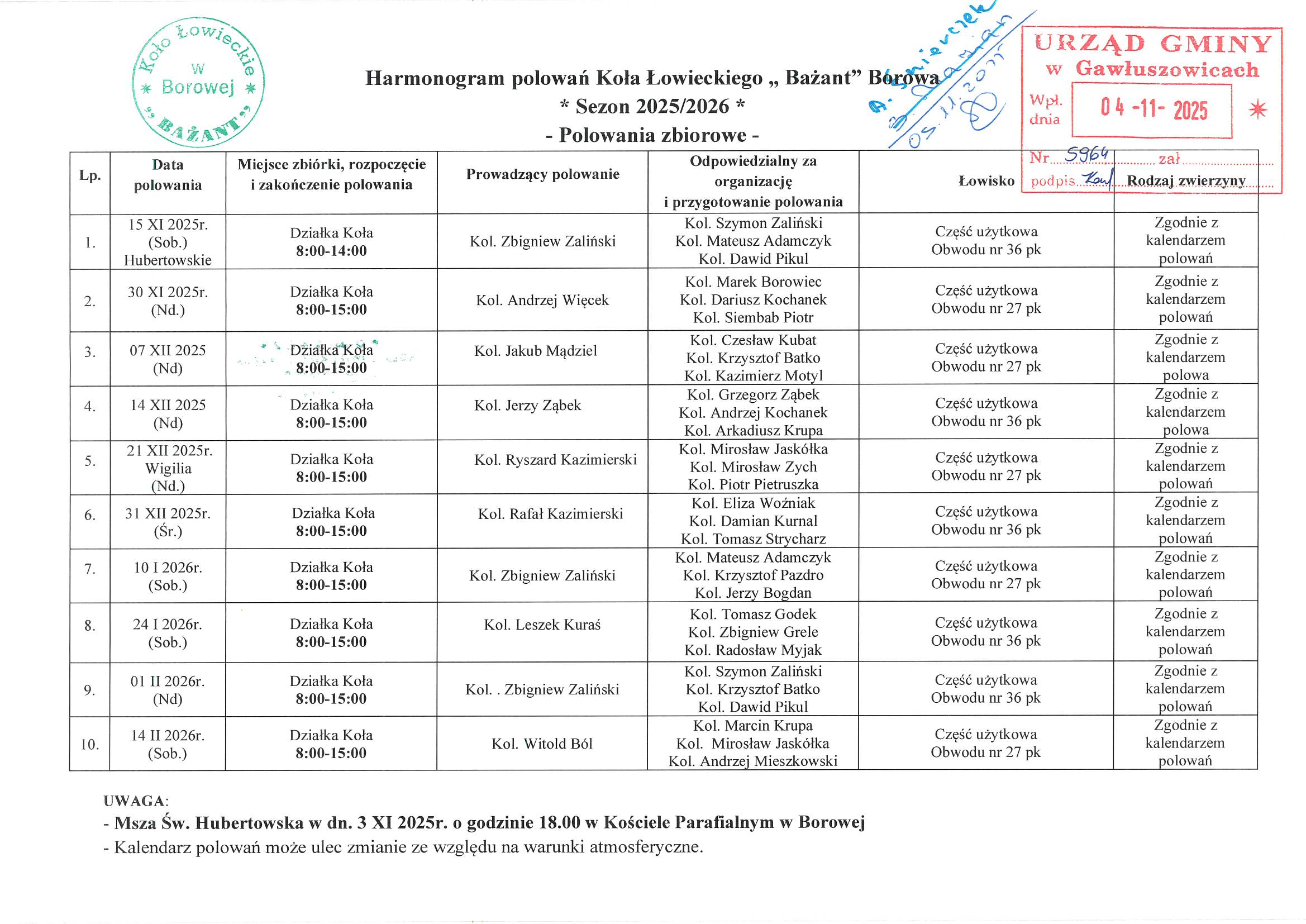 Plany Polowań na sezon łowiecki 2025/2026 r.