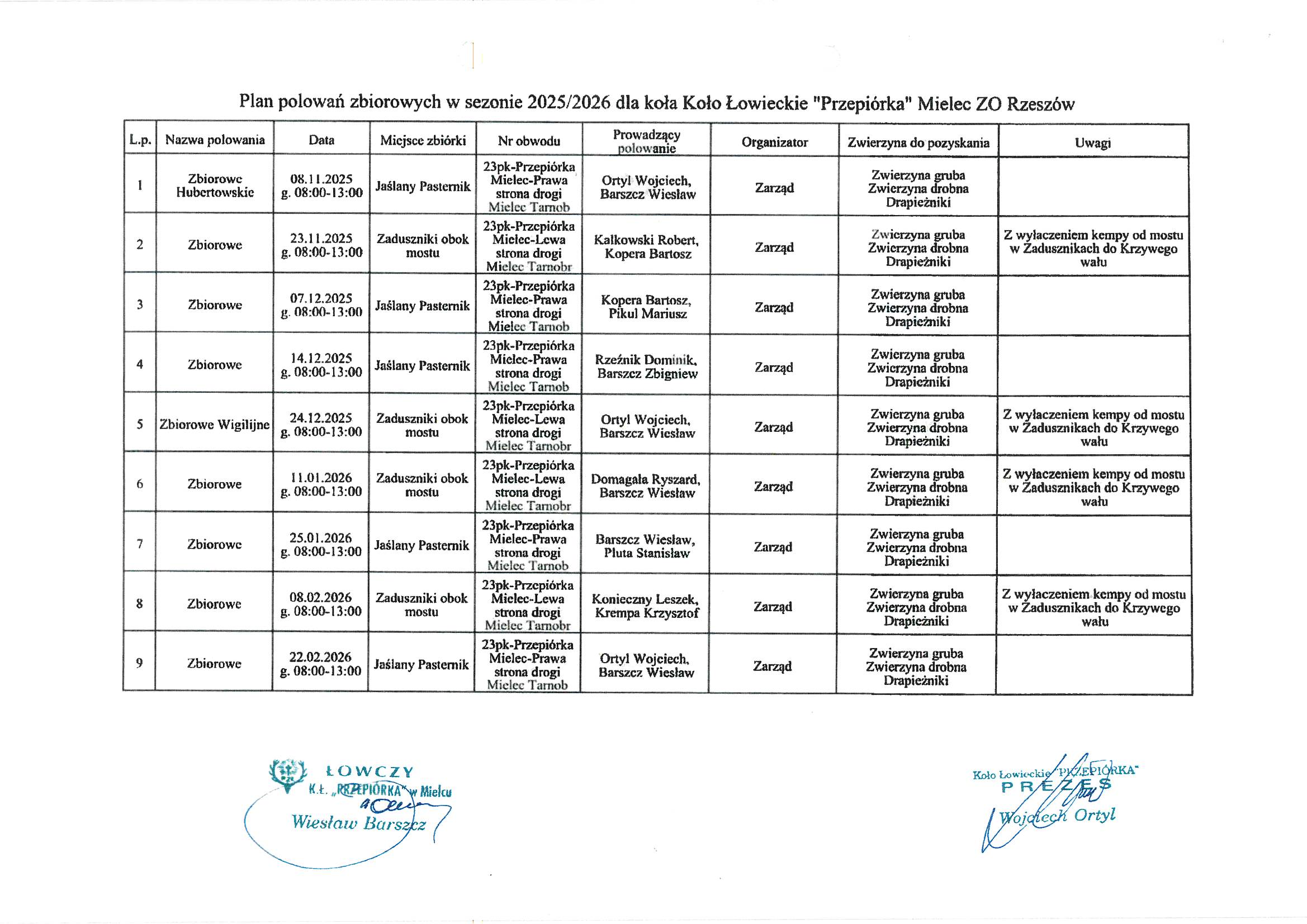 Zarząd Koła Łowieckiego “Przepiórka” Mielec oraz Zarząd Koła Łowieckiego “Bażant” Borowa przedstawiają do wiadomości Plany Polowań swoich kół na sezon łowiecki 2025/2026r.